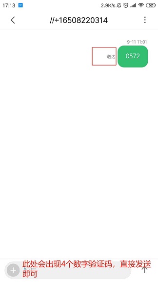 (6)发送短信,验证成功。(由于是国际短信,需要5角钱)